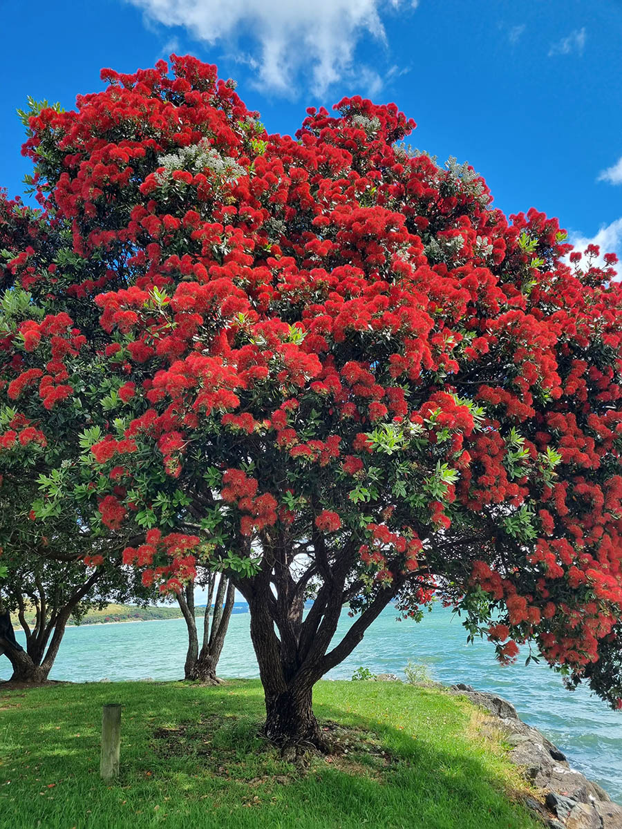 Pohutukawa tree along Beach Road, Onerahi
